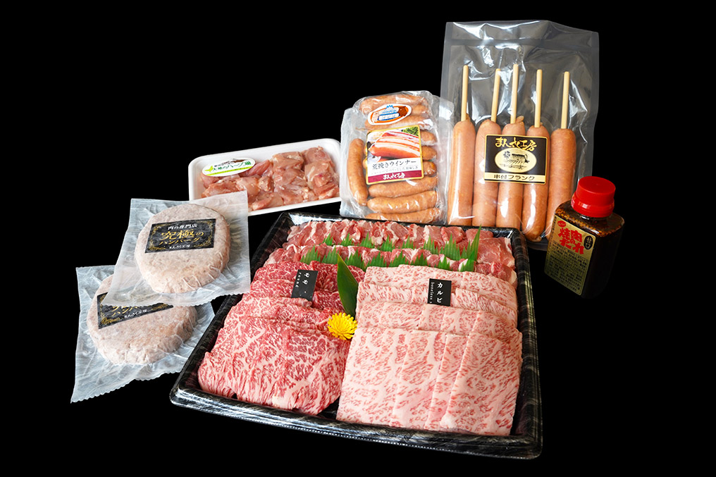 黒毛和牛やいきいき金華、大地のハーブ鶏を詰め込んだ贅沢セット。自宅で手軽に本格BBQを楽しめます。